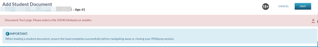 | Is this the only relevant document of this type for the student? | Allows a user to identify if the document being added should be the ONLY Student Document for the Student and document type with Is Relevant = Yes. Where Yes is selected, the system will set all other not-deleted Student Documents of the same document type to Is Relevant = No for the student upon save3). | PASIprep Combobox / Dropdown containing Yes & No with no default. | N/A |