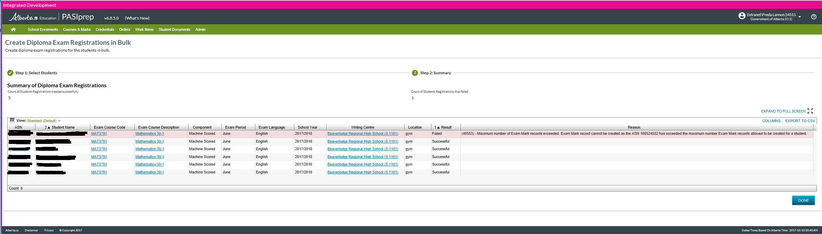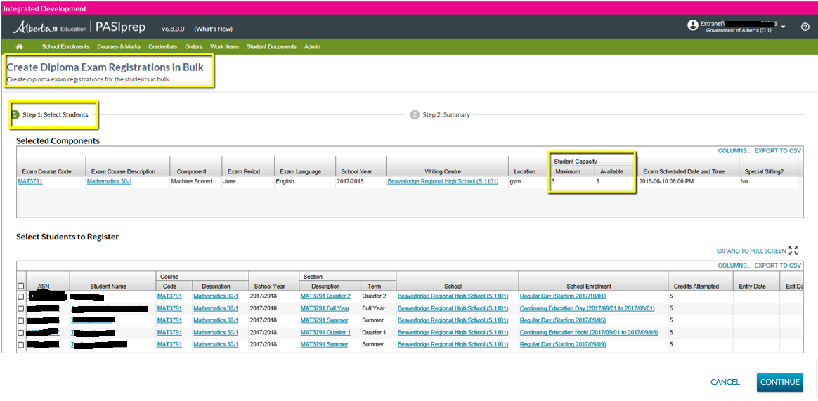 This functionality uses the PASIprep Stepper paradigm to allow a PASIprep user to add Diploma Exam Registrations for students in Bulk.