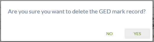 This dialog allows a user to delete an existing GED Exam Mark record.