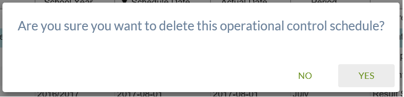 The user will be presented with a Confirmation dialog to confirm or cancel the deletion of the desired control schedule.