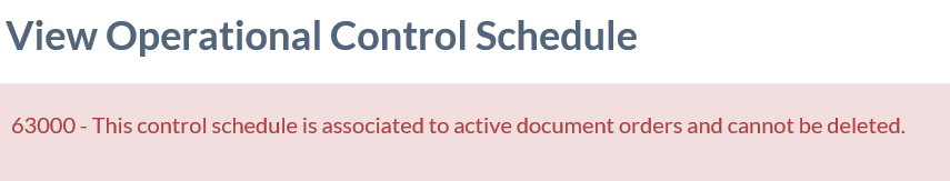 An Operational Control Schedule can be deleted by either “checking” the check box for the desired record on the List Operational Control Schedules screen and clicking the “DELETE SELECTED” link OR from the View Operational Control Schedule screen and clicking the “DELETE” link.