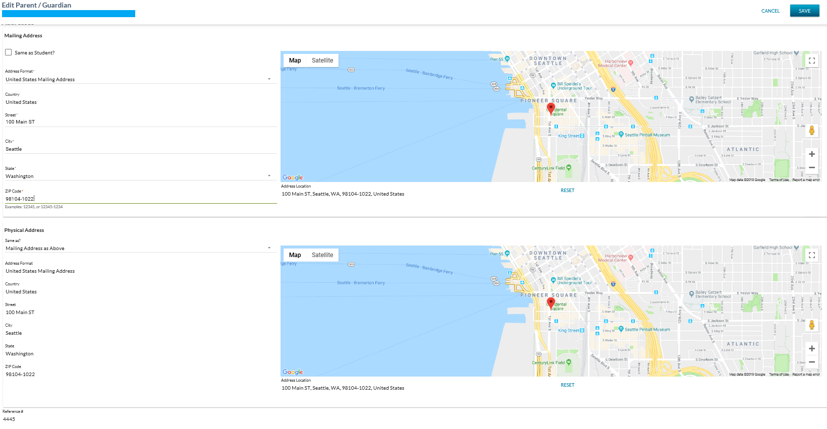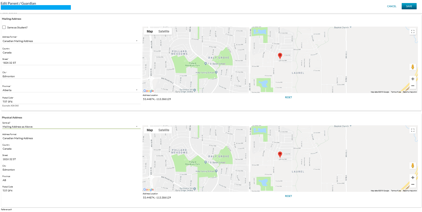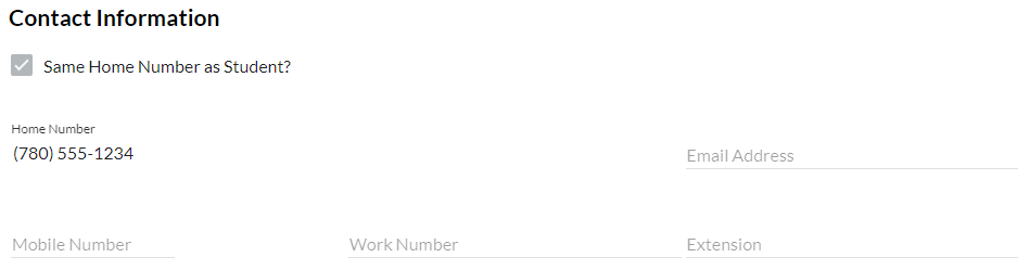 | Same Home Number as Student? | Indicates if the Parent/guardian has the same home phone number as the student. Checkbox with options of Yes/No. Defaults to 'blank'. Optional. |
