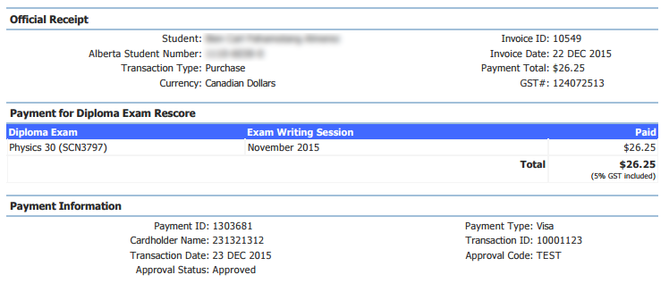 Invoice IDElectronic Payment System Invoice (linked by Diploma Exam Rescore Request)Invoice Identifier