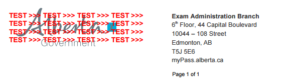 The footer contains disclaimers and contact information for Exam Administration (Assessment).