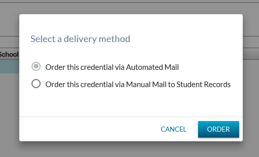 * Deliver this credential through automated mail with a cardboard insert (Default): Delivery Method = Automated Mail plus cardboard * Return this credential to Student Records for special handling and manual mailing: Delivery Method = Manual Mail