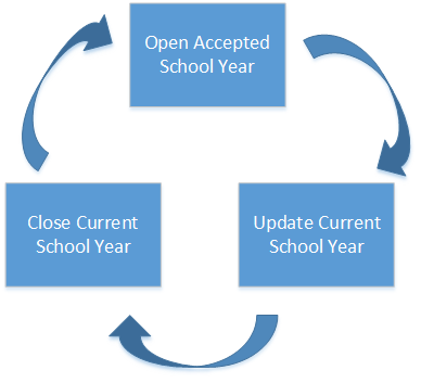 The “Open Accepted School Year” button label is displayed once a Current School Year has been closed.