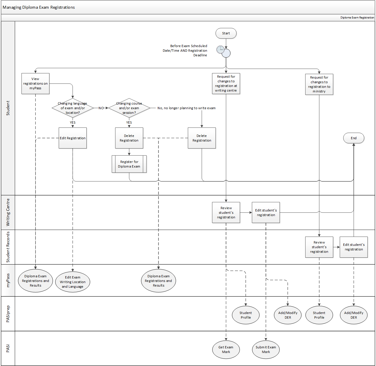 2. Writing Centre updates the registration as requested by the student through PASIprep's Edit Diploma Exam Registration or an integrated SIS via the Submit Diploma Exam Mark service.