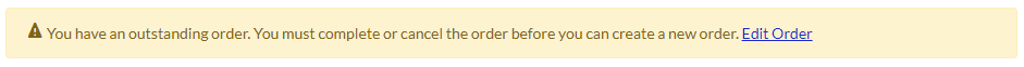 If the Order is in an Under Construction or a Payment Not Received status, an Outstanding Order warning message is displayed on screen: