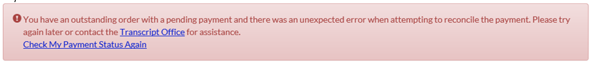 User can trigger reconciliation to run again by clicking on the [Check My Payment Status Again] link.
