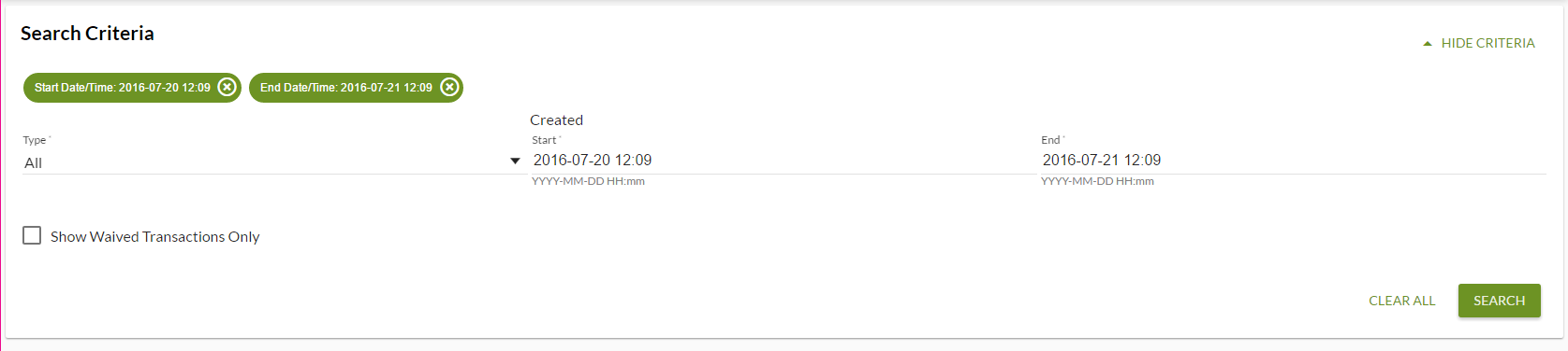 Clicking/tapping [Edit Criteria] that sits on the corner of the context bar expands the Context Bar to reveal the search criteria form that lists all the search criteria relevant to the Business Object/Data Type that the user is currently viewing.