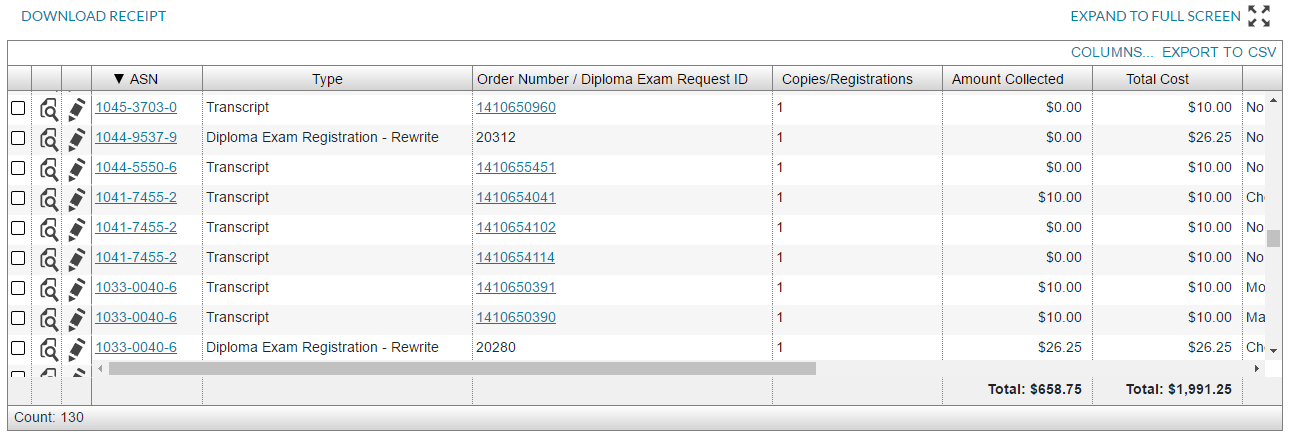 The user can expand the search result grid into a full screen mode by clicking the full screen toggle button in Grid Action Menu.
