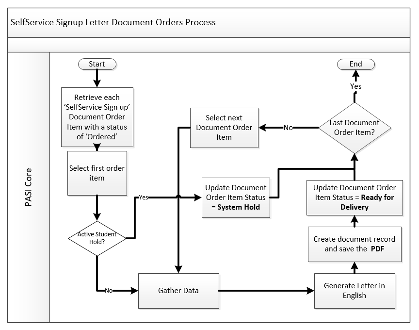 This is a synchronous service/agent that processes Self Service Signup Letter (PDF) document order items. This processing agent creates and stores intermediary PDF for delivery processes.