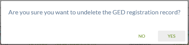 This dialog allows a user to undelete an existing GED Exam Registration record.