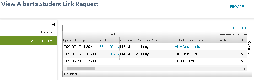 | Requested Last Name | Displays the Last Name provided by the requestor in the Alberta Student Link request. |