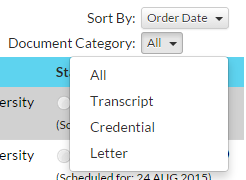 The grid can also be filtered by Document Category by selecting the desired category in the dropdown: