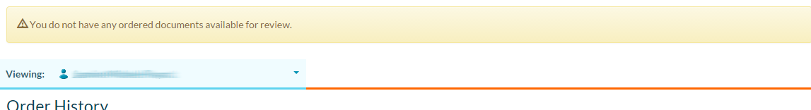 If the Student selected in the Student Connection Selector does not have any Document Orders to display in their Order History, the Document Order grid will be empty and the following message is displayed: