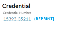 Clicking on the [REPRINT] action will redirect the user to the Add Credential Reprint Order screen. |