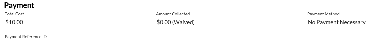 | Payment Amount Collected | Displays the amount of fees collected from the requestor for the Document Order Item. |
