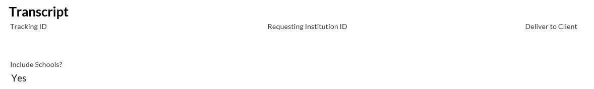 | Transcript Requesting Institution | Displays the origin of the Document Order Item, otherwise displays a blank value. |