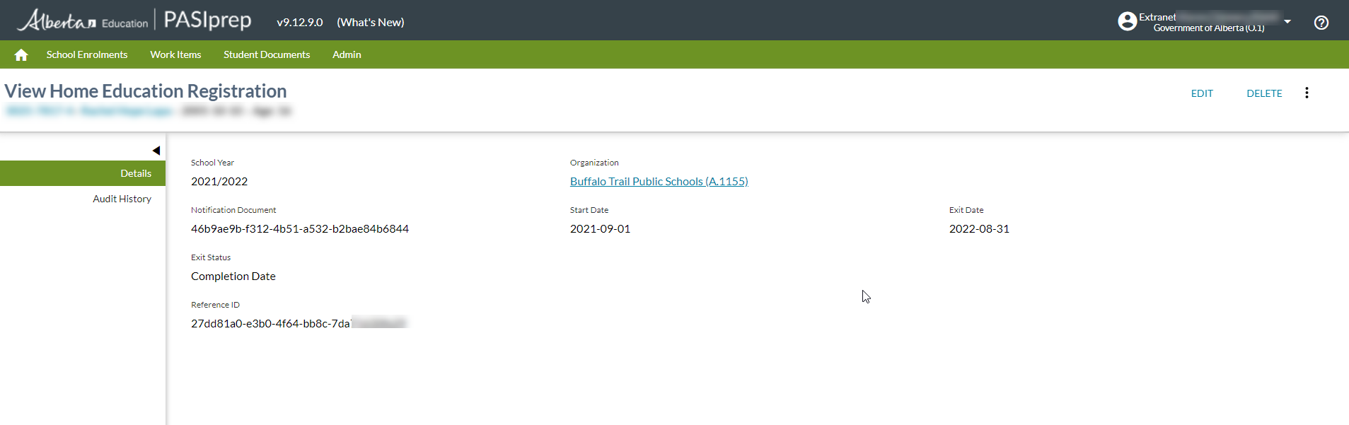 This screen (based on the PASIprep View Item template) will allow a PASIprep user to view the details of a Home Education Registration record.