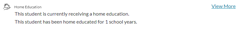 This card is included in the Highlights view when the student is currently receiving a home education (as per the criteria for the first line).