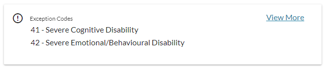 This card is only included in the Highlights View where the student has at least one exception code to be listed on the card.