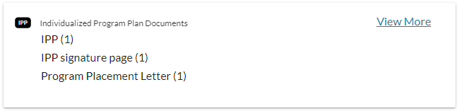 When clicked, the View More link will launch the View Student - Student Documents Tab with the Relevant Individualized Program Plans view displayed.