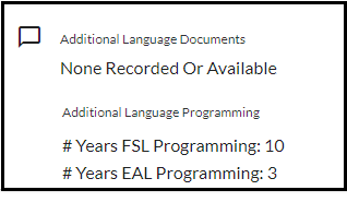 This card will display either the student’s Primary Language Spoken at Home or “None Recorded” if the student’s Primary Language Spoken at Home as not been set.