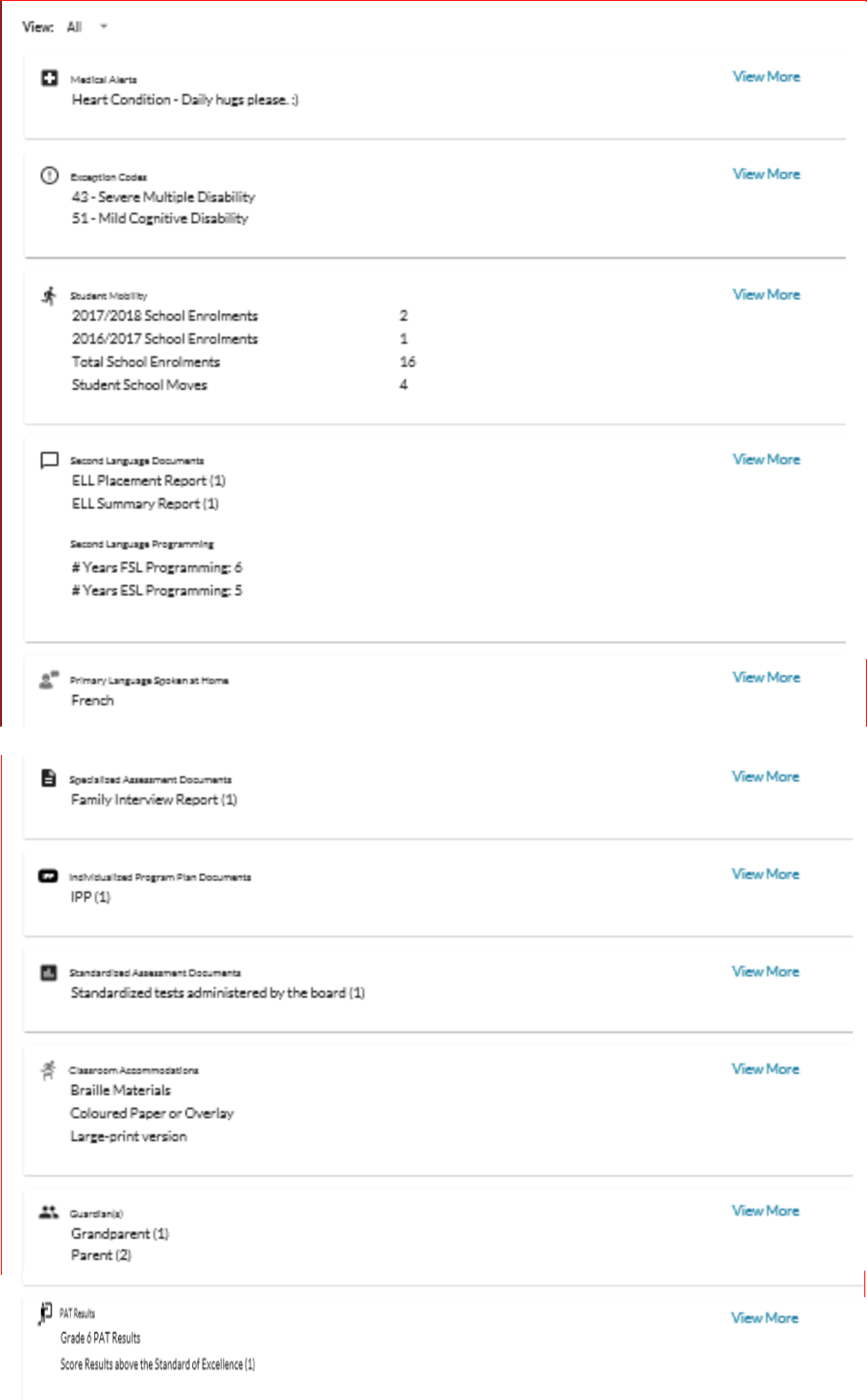 When selected, the View More link takes the user to the View Student - Personal Information Tab for the student.