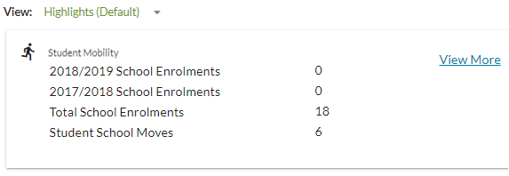 When selected, the View More link takes the user to the View Student - School Enrolment Tab.