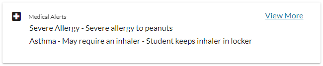 This card is only included in the Highlights View where the student has at least one medical alert to be listed on the card.