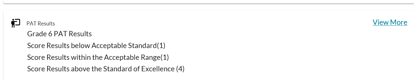 In either view when clicked, the View More link will open the View Student - Courses & Marks Tab for the student with the PAT Results filter set on.