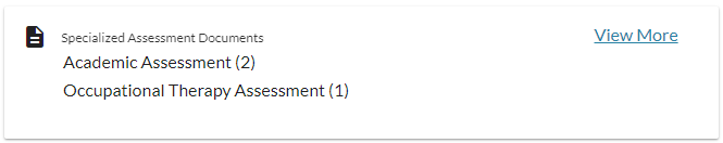 When clicked, the View More link will launch the View Student - Student Documents Tab with the Relevant Specialized Assessments view displayed.