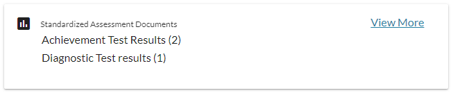 When clicked, the View More link will launch the View Student - Student Documents Tab with the Relevant Standardized Assessments view displayed.