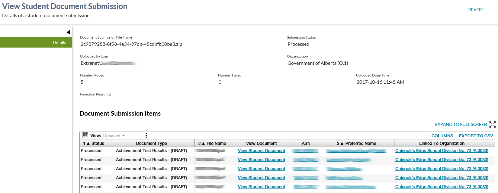 View Student Document Submission