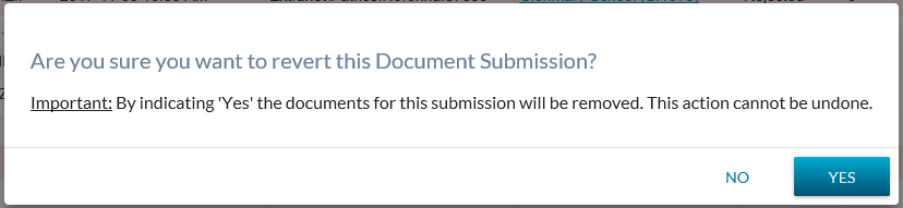 RevertWhen the user selects this action, all processed document submission items will be deleted from PASI. Revert is only available for 14 days after the document submission has been loaded.