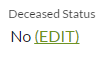 Where the user has the appropriate permissions (see Secured By), the “EDIT” link next to Deceased Status is visible.