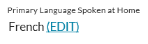 Selecting “Edit” takes the user to Edit Primary Language Spoken at Home.