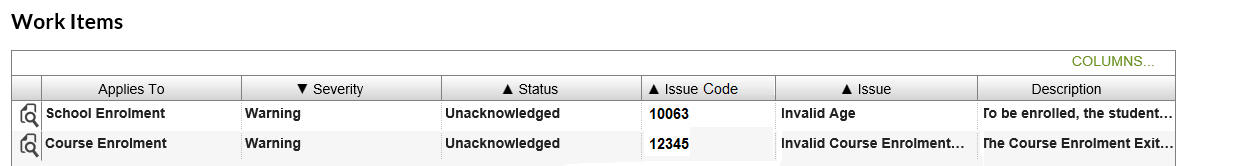 Note: Work Items with a status of Out of Date will not be returned on this screen and will not be included in the count of work items for the student.
