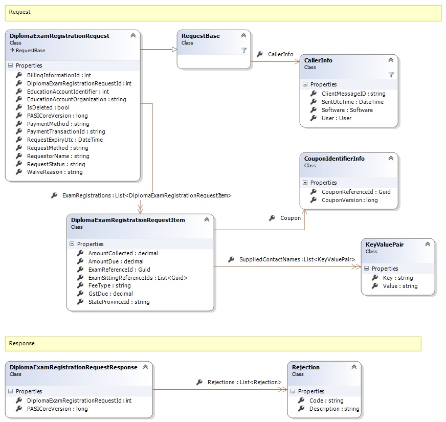 Type: DiplomaExamRegistrationRequestResponseThe PASI Core version and Id for the diploma exam registration request.