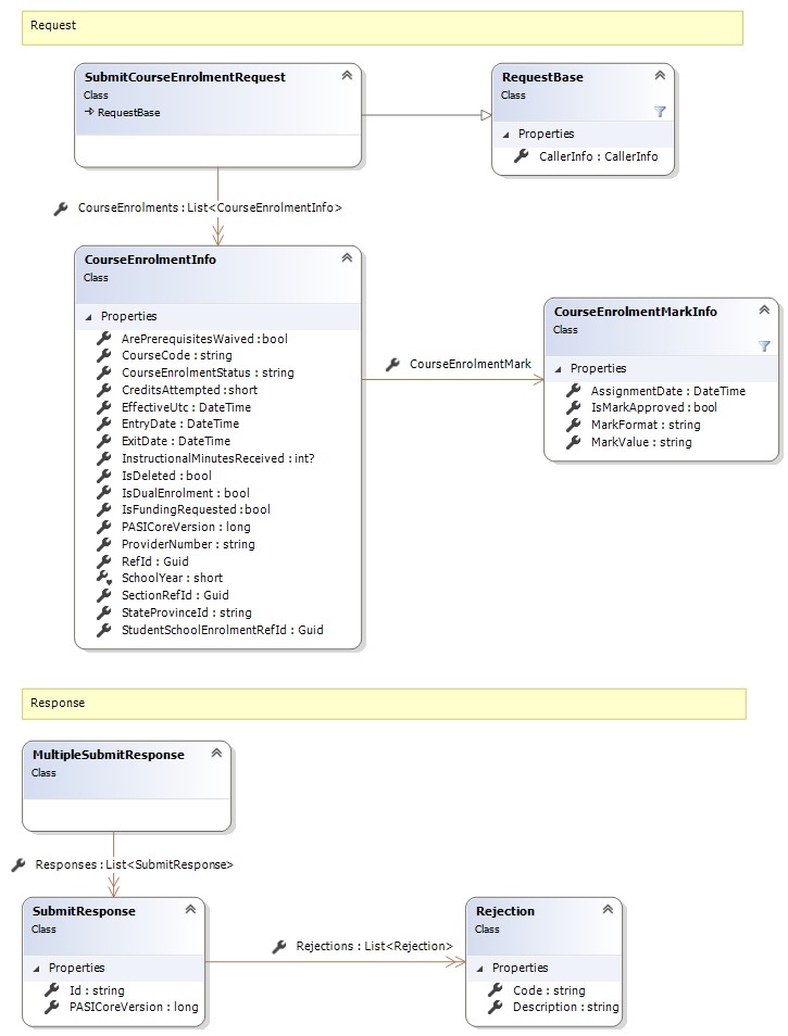 The request contains a single record or a list of CourseEnrolmentInfo data contract to be submitted to PASI Core.