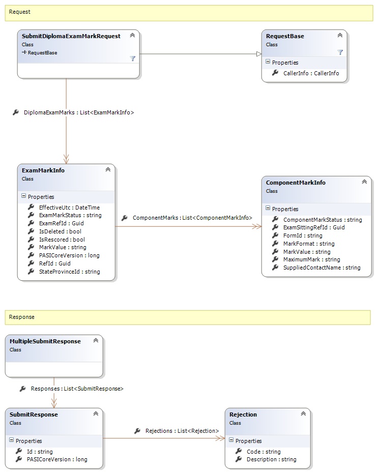 The response contains a SubmitResponse for each Exam Mark that is submitted. If the submission is successful, the response will include the ReferenceID (Id) and PASICoreVersion. The Rejections property will identify any validation rules that have failed.
