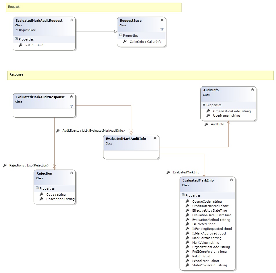 The request contains an Evaluated Mark ref Id (GUID) that is used to indicate the Evaluated Mark for which audit information will be returned.