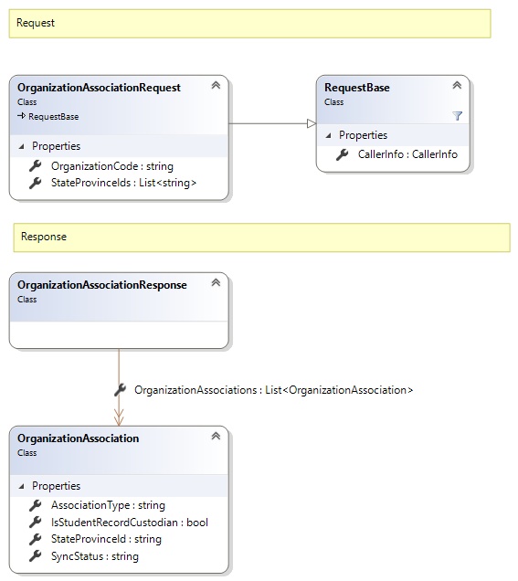 The response OrganizationAssociationResponse contains a list of organization associations which shows the association each student has with the client's organization. If a Student's StateProvinceId has been deactivated only a client representing the Ministry is associated to the student.