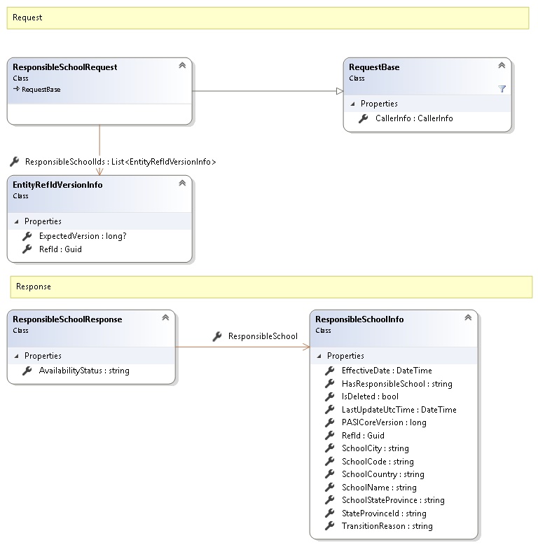 The request contains a list of Responsible School RefIds and expected versions the client wishes to retrieve.