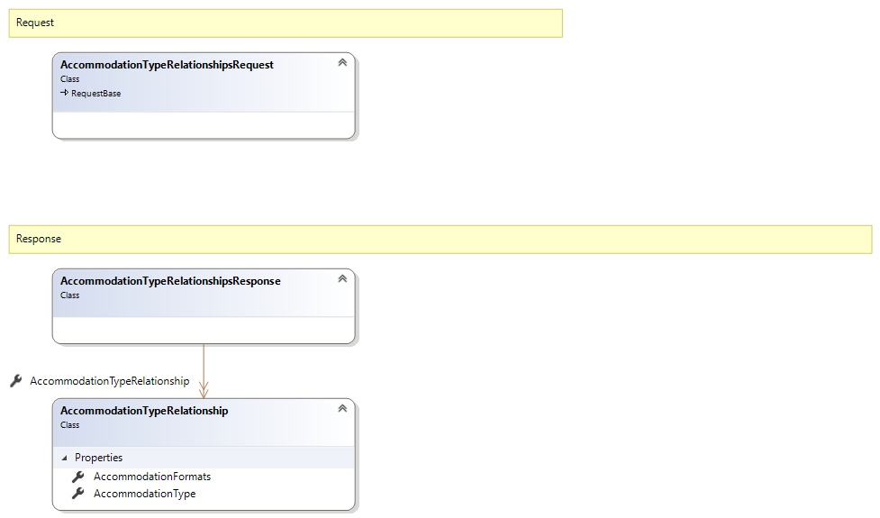 The response AccommodationTypeRelationshipsResponse which contains all the Accommodation Types and related Accommodation Formats.