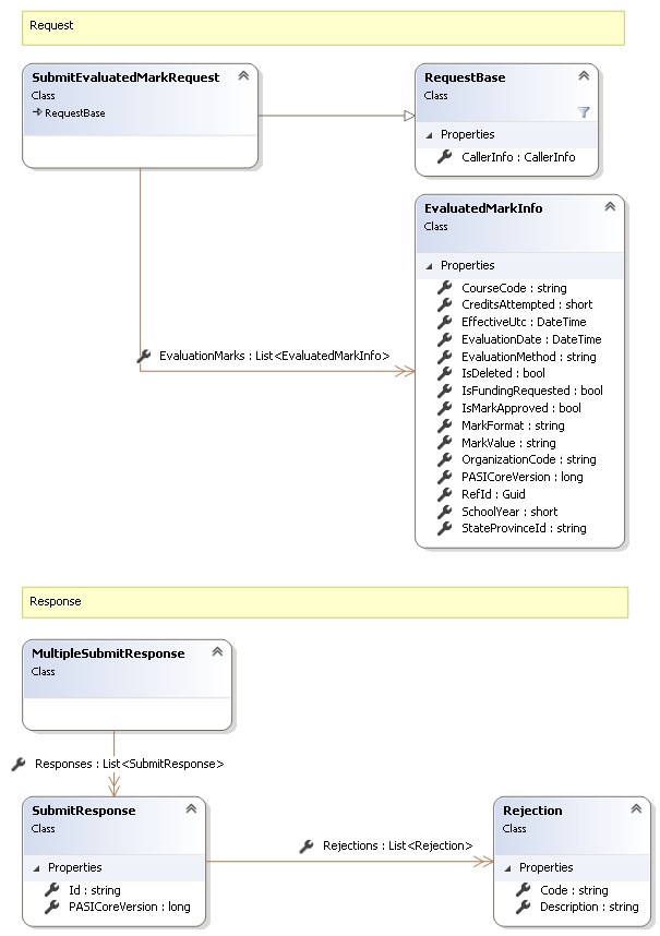 The request contains a single record or a list of EvaluatedMarkInfo data contract to be submitted to PASI Core.