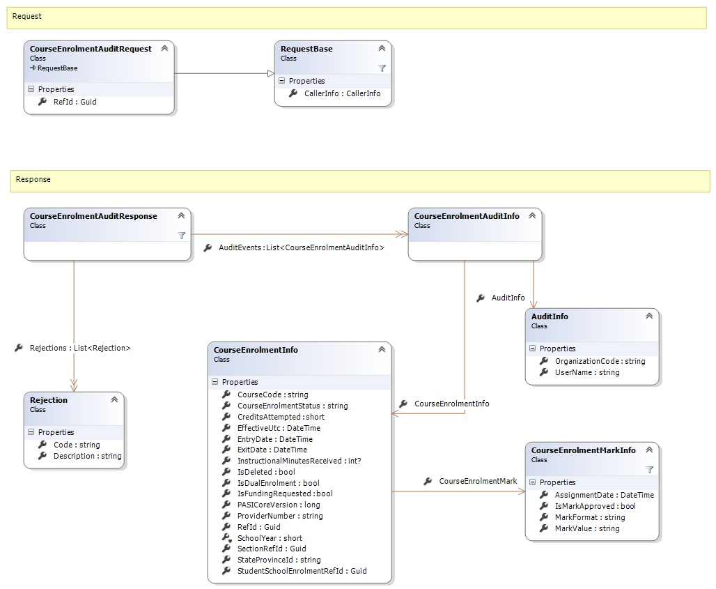 The request contains a course enrolment Id (GUID) that is used to indicate the Course Enrolment for which audit information will be returned.